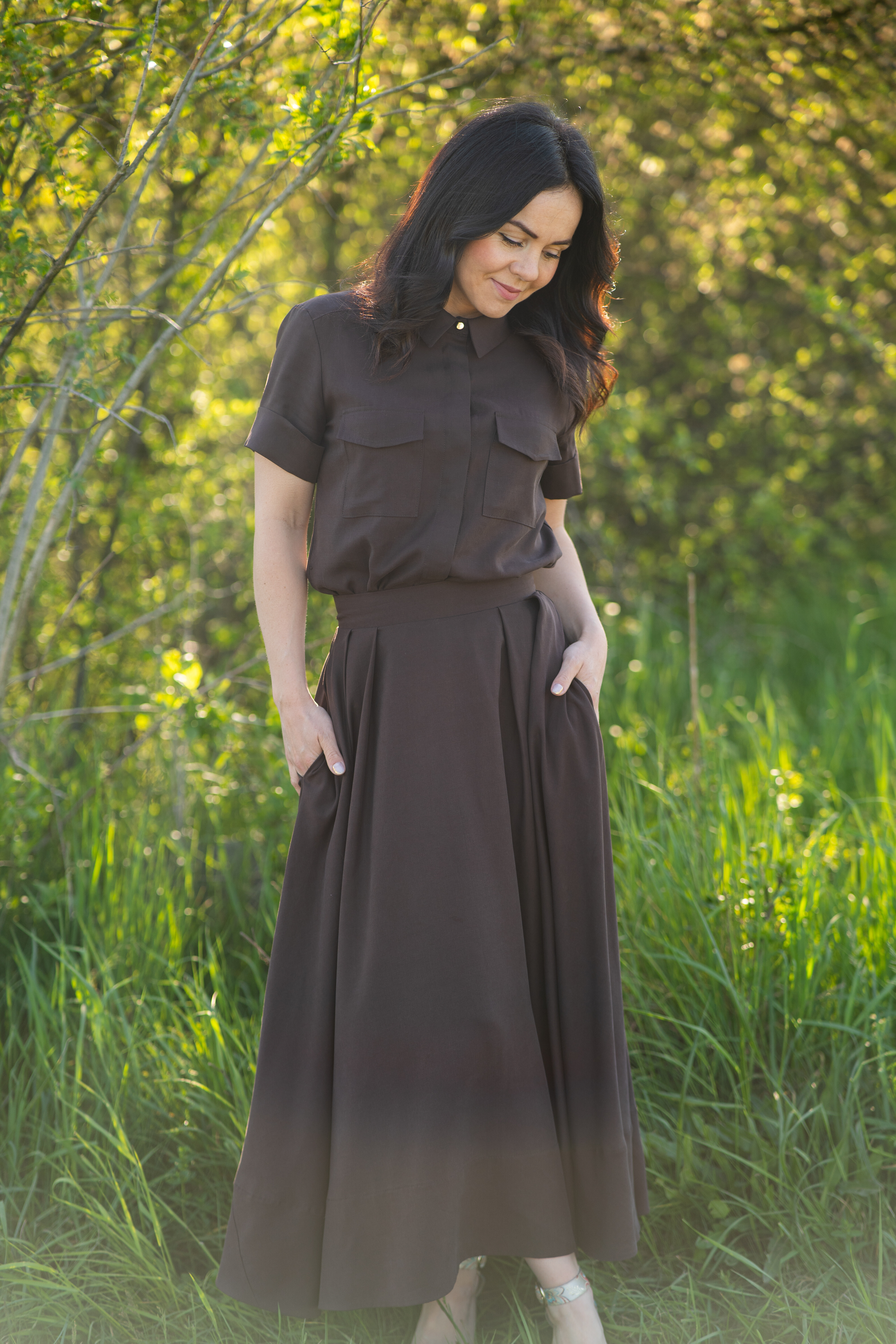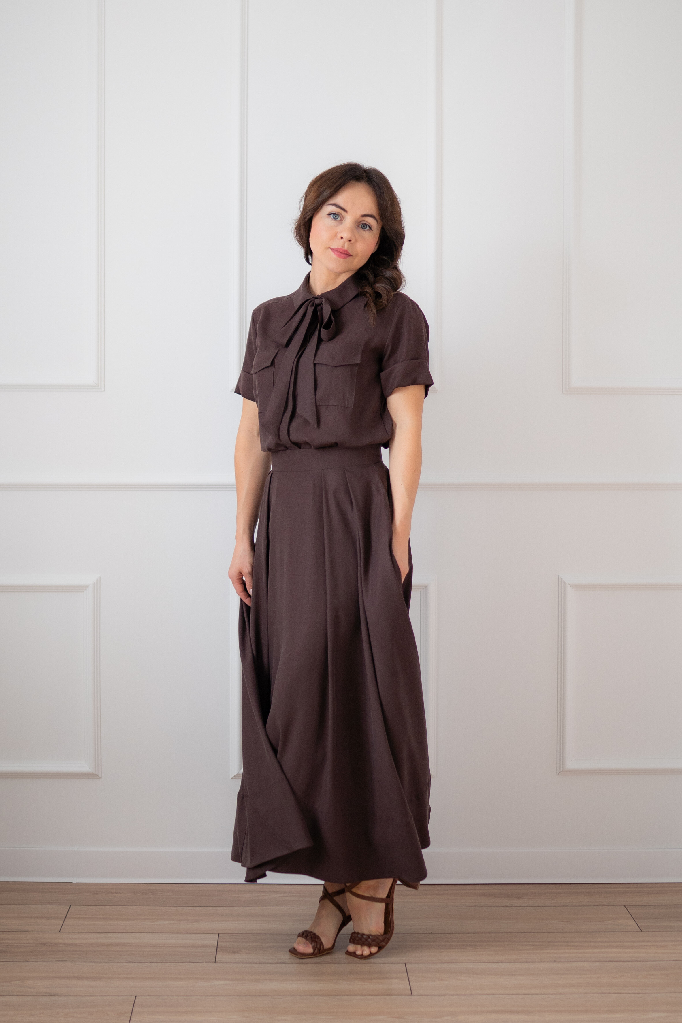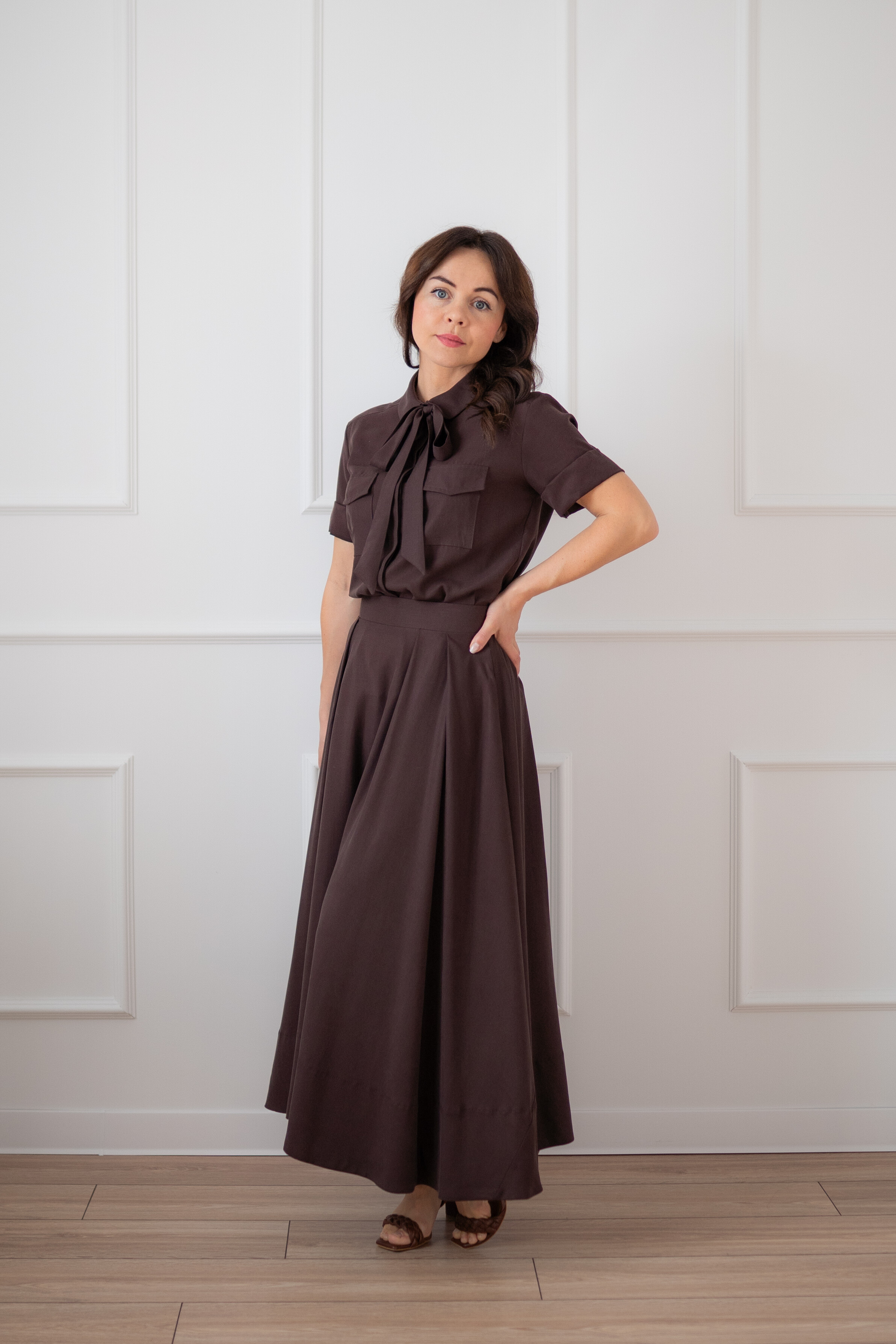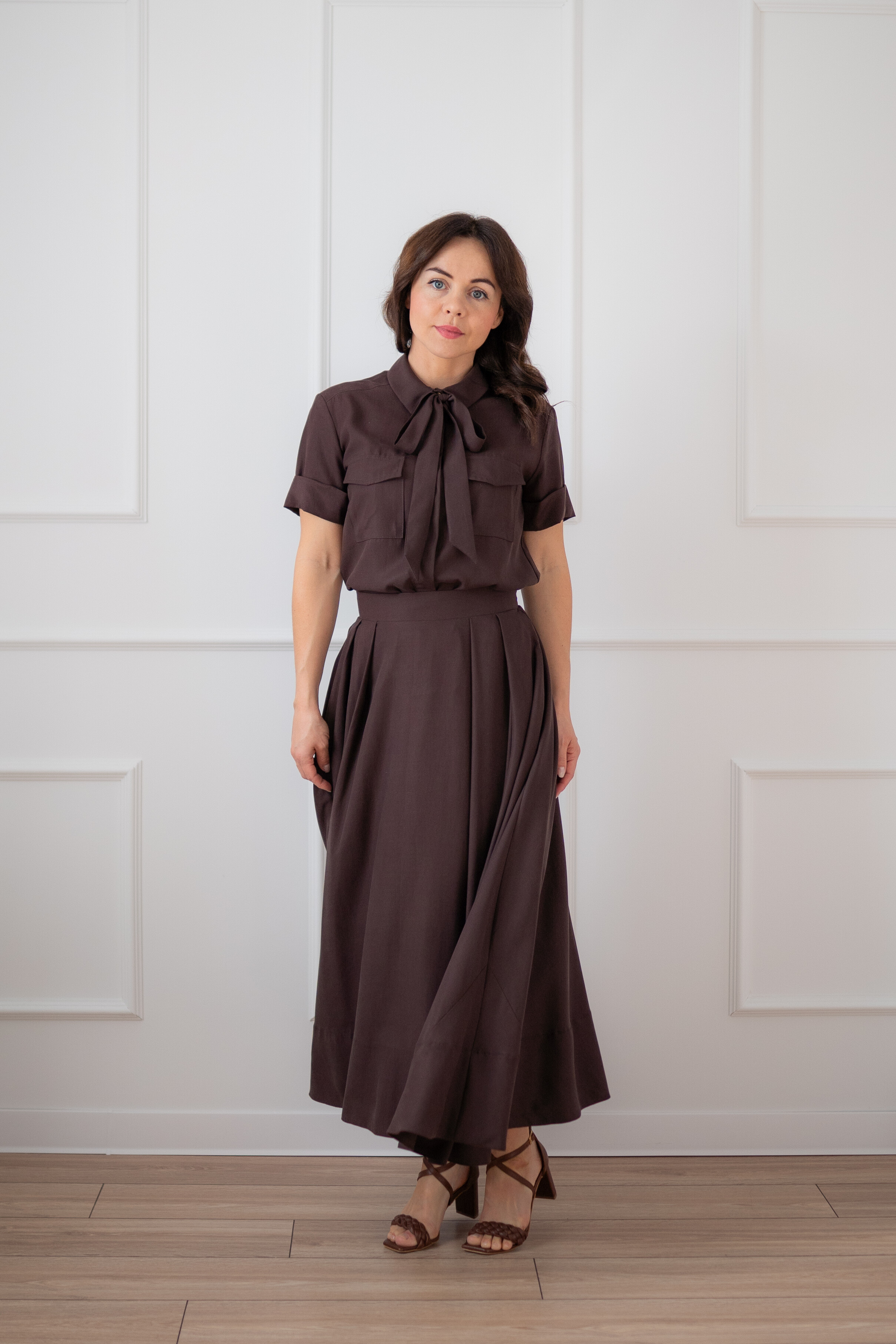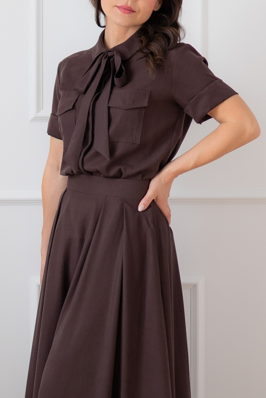 Na zdjęciu w połączeniu z brązową spódnicą OPERA.