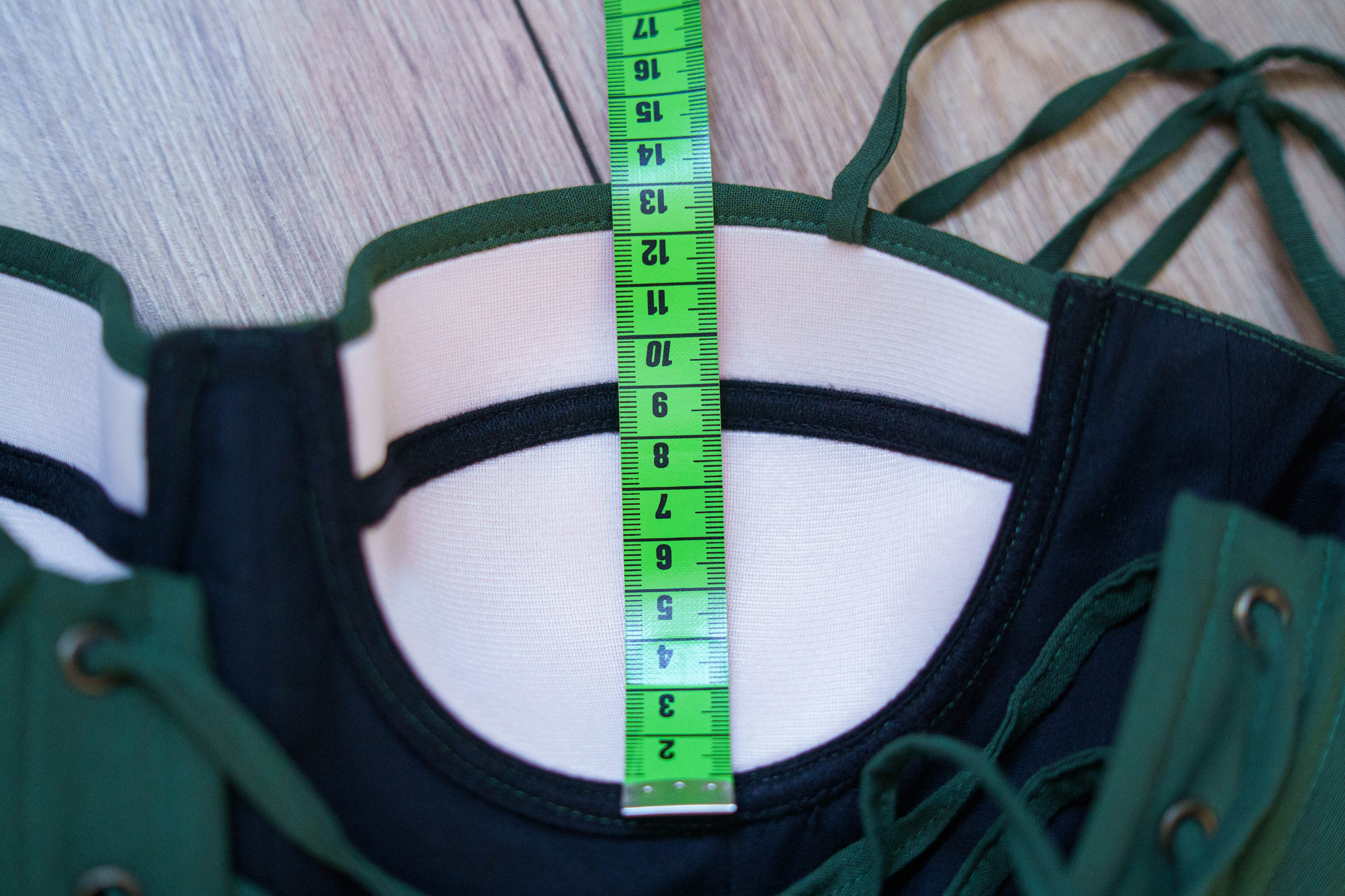 Przy wyborze rozmiaru należy przede wszystkim skupić się na obwodzie talii, ponieważ cała góra jest regulowana wiązaniem. Na załączonym zdjęciu jest instrukcja jak dokładnie wymierzyć miseczki aby dobrać odpowiedni rozmiar (można porównać z wymiarami swojego stanika) należy również mieć na uwadze to, że dzięki regulacji wiązaniem np. rozmiar 36 będzie pasować zarówno na biust B jak i D. Poniżej są podane moje wymiary więc można sobie porównać jak to wygląda.