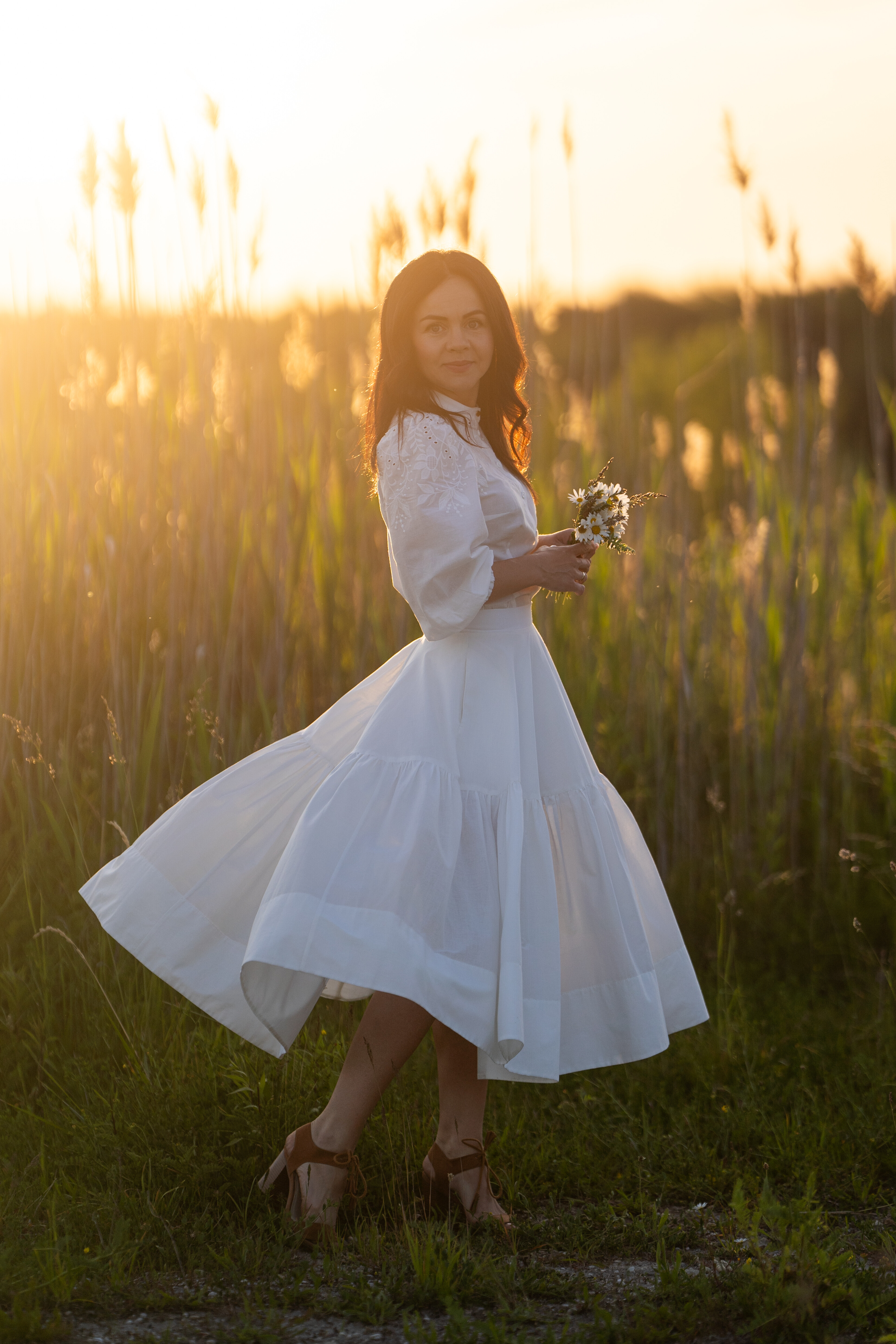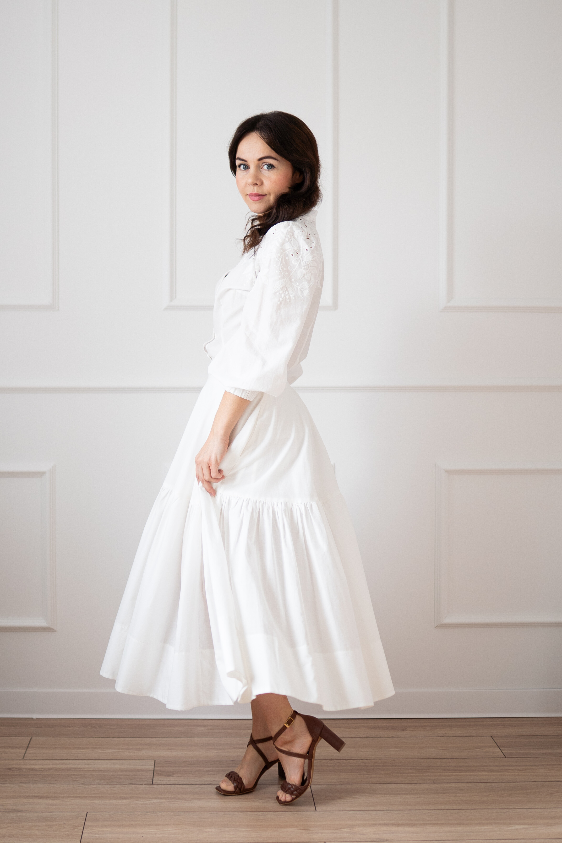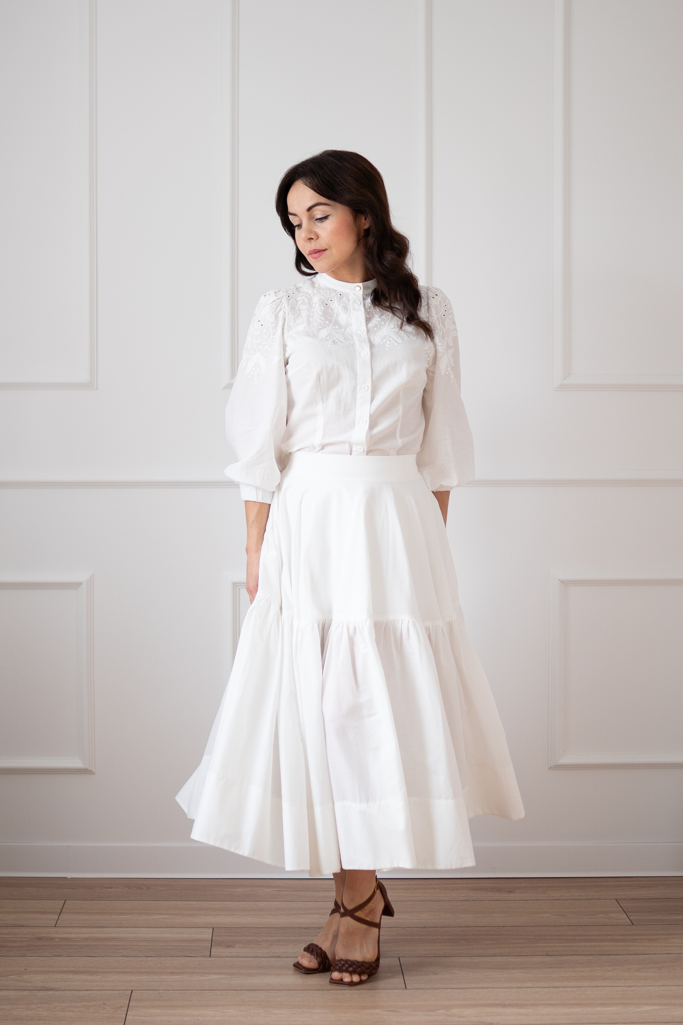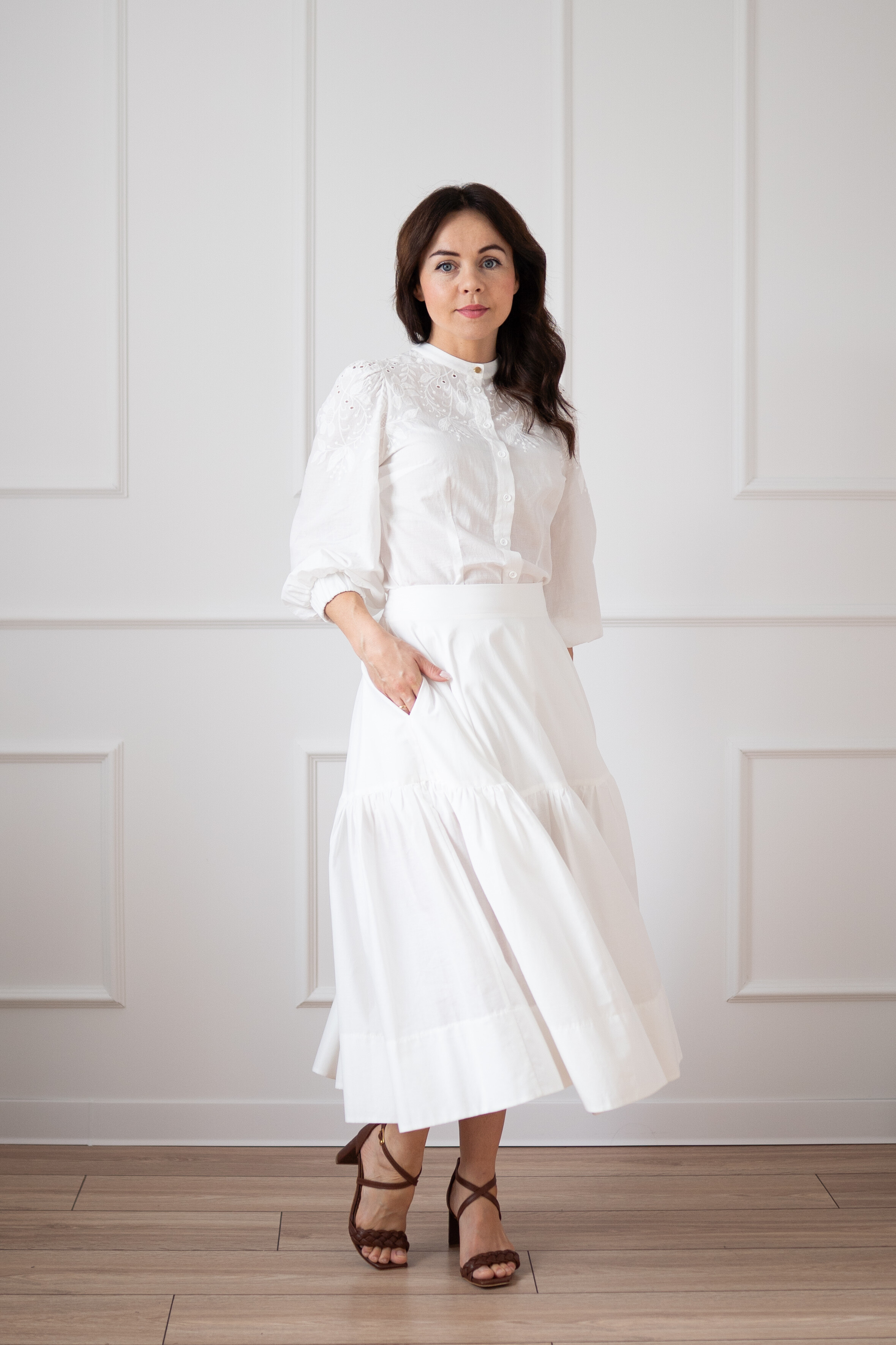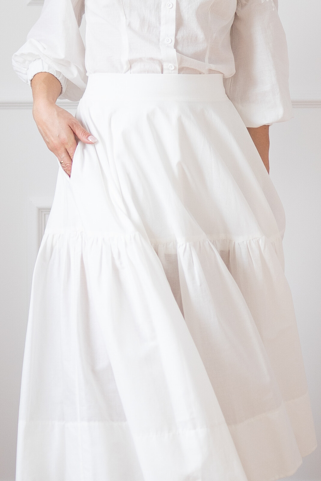 Spódnica została wykonana z delikatnego, lekko przejrzystego batystu.